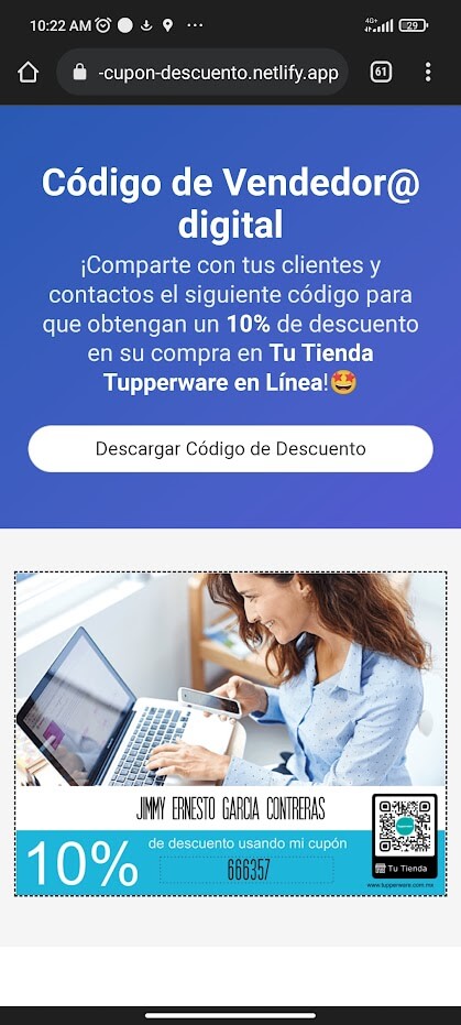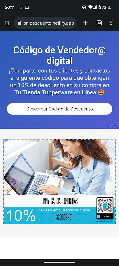 Desarrollé una aplicación que permitió a la Fuerza de Ventas personalizar el cupón de descuento. El cupón se generó con la API de Shopify y fue dinámico según la información del usuario. El sitio está hecho con Vue y BulmaCSS.